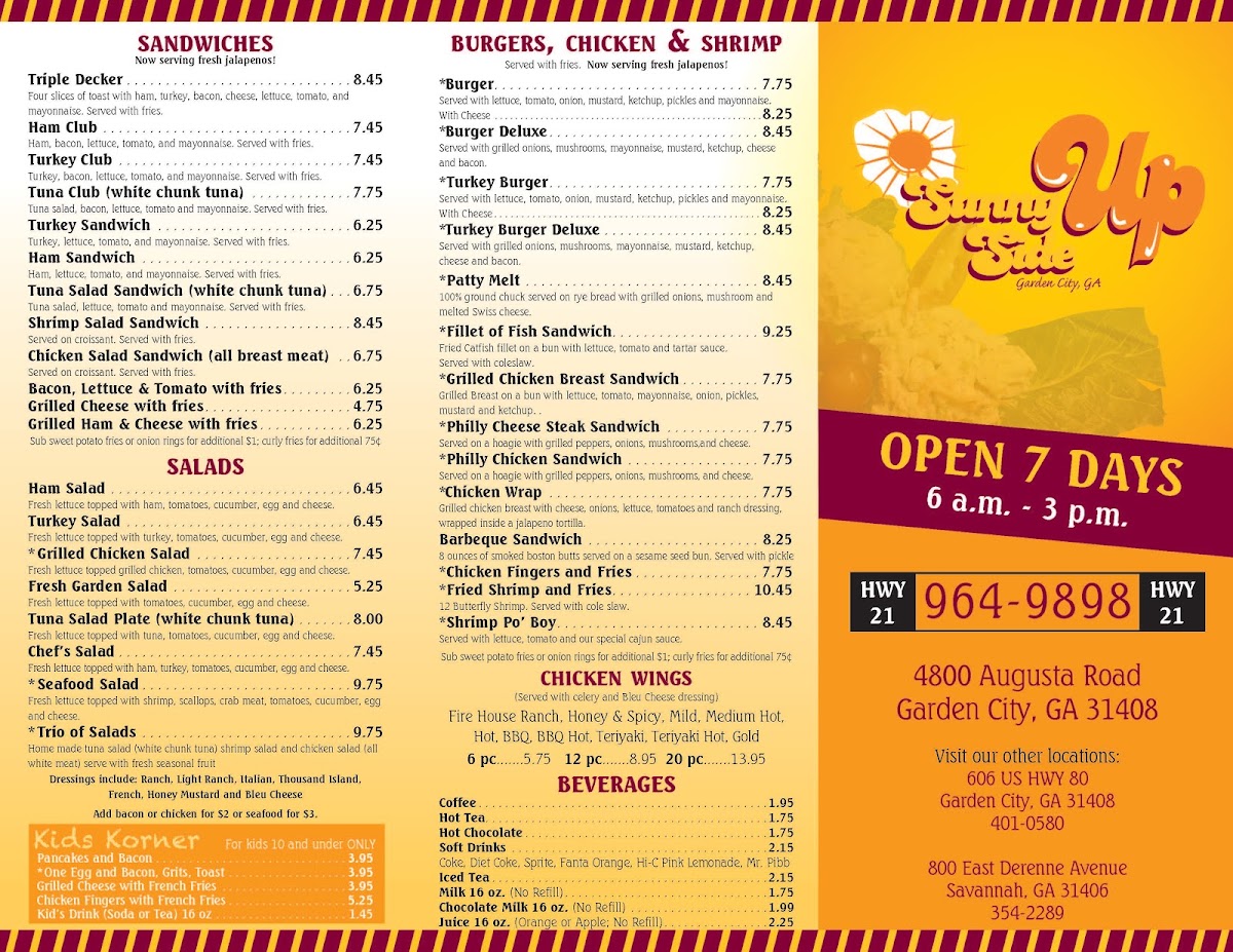 Welcome to Sunny Side Up, your new go-to breakfast spot located at 4800 Augusta Rd, Garden City, GA. Renowned for its warm and inviting atmosphere, Sunny Side Up offers a delightful range of breakfast choices that are sure to please any palate.